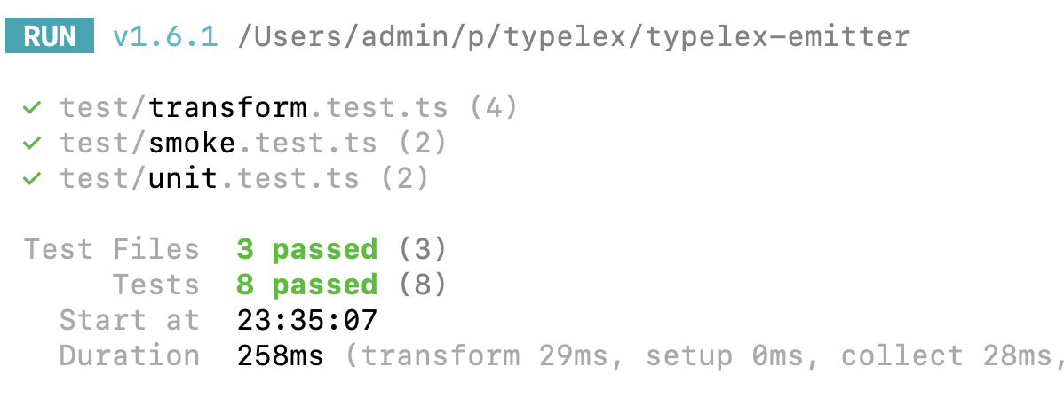 in a flash of inspiration, i downloaded the typespec repo from github and put it alongside my project folder. i instructed claude to consult the source code of other emitters and to replicate their test setup.